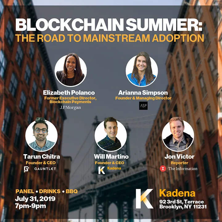 Please join us as we host a live panel on The Road to Mainstream Adoption with guests such as Elizabeth Polanco formerly of J.P. Morgan, Arianna Simpson from ASP, Tarun Chitra from Gauntlet Networks, and our very own Founder and CEO, Will Martino. Journalist Jon Victor from The Information will moderate the panel.