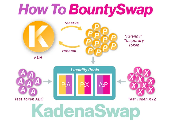 We call the Bountyswap temporary token a KPenny which gives a hint of its functionality. KPenny tokens can be reserved for use with Bountyswap at a rate of 1M to 1 KDA token.